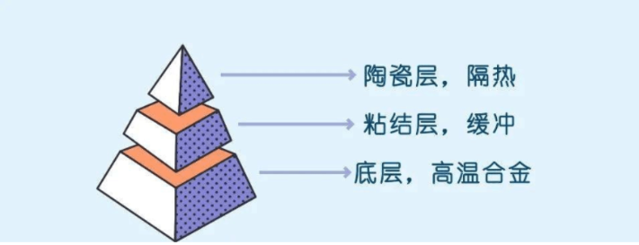 热障涂层拥有一个像“三明治”一样的多层结构,由陶瓷隔热层、金属粘结层和高温合金底层组成涂层系统。尽管形似“三明治”,但热障涂层的制备并不是简单地层层叠加,需要先将制备涂层的材料蒸发成蒸汽或细化成直径微米级的颗粒,再通过结晶生长或借助极高的能量,将这些颗粒牢固地涂覆在材料表面。因此,热障涂层常使用电子束物理气相沉积、等离子体喷涂等工艺制备。