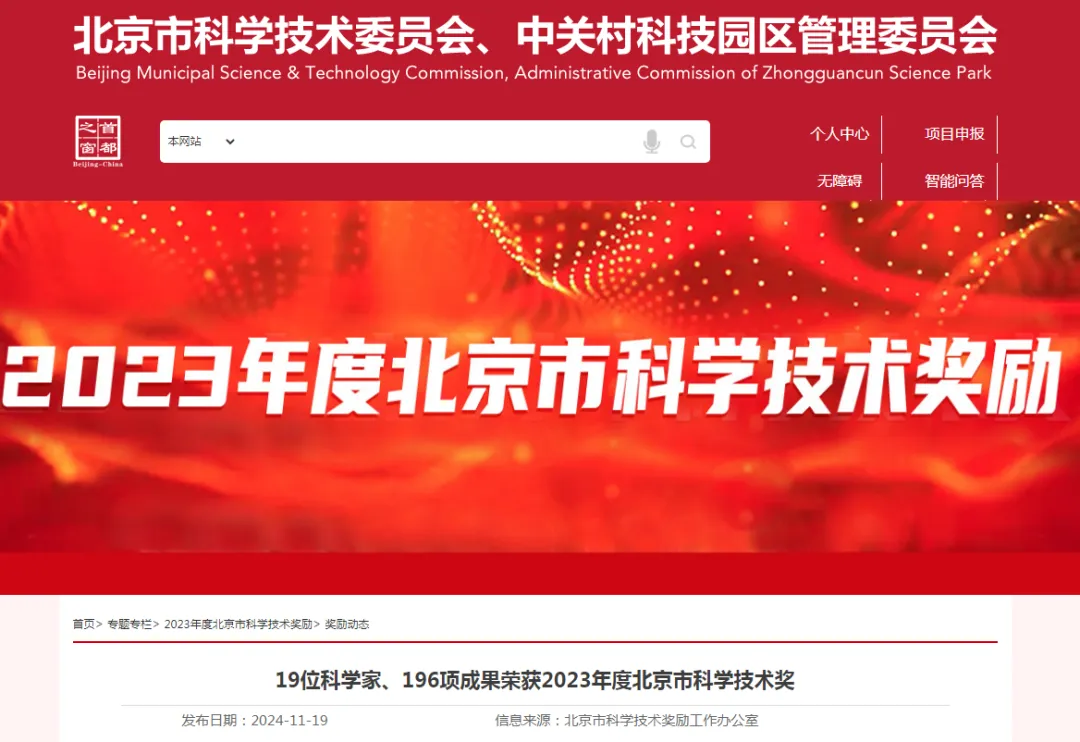 "据北京市科学技术奖励工作办公室发布消息,11月19日,2023年度北京市..."