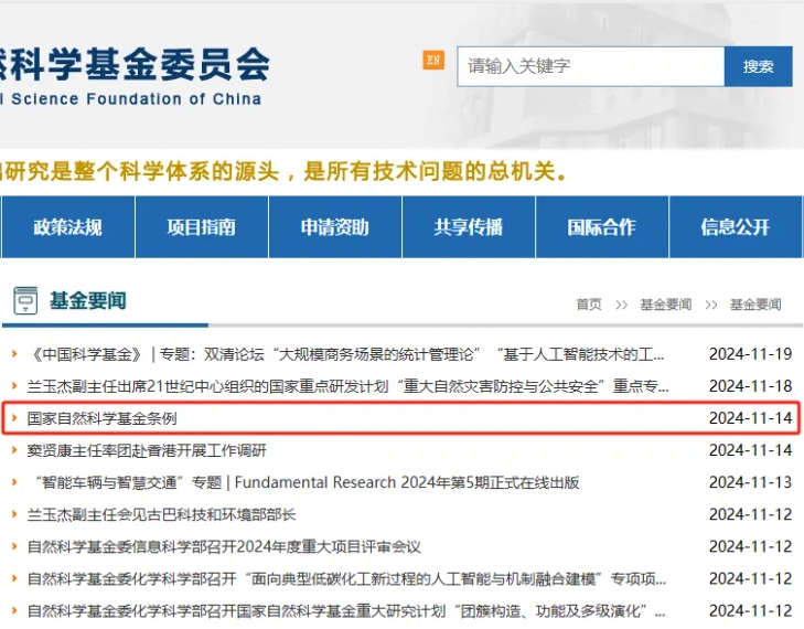 "《国家自然科学基金条例》已经2024年10月25日国务院第44次常务会..."