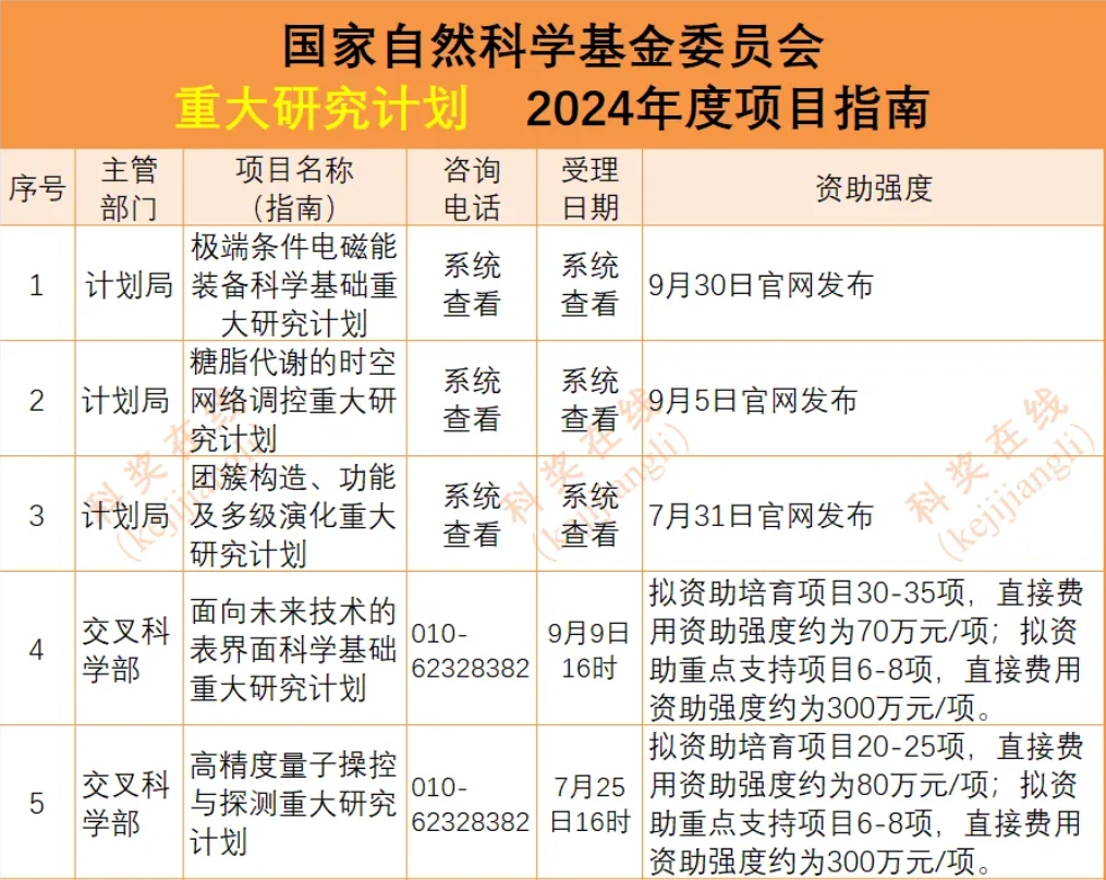 2024年度国家自然基金非集中申报项目指南汇总(4类50个指南安排)