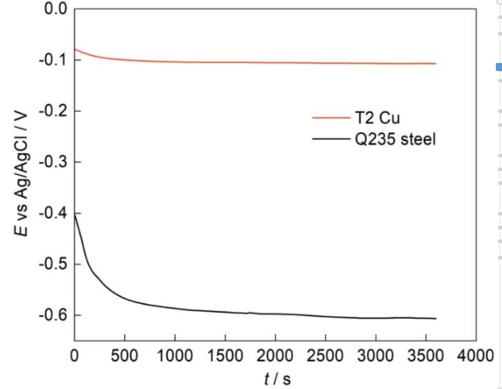 "通过电化学测试实验和腐蚀产物分析研究了T2铜合金和Q235钢在北山..."