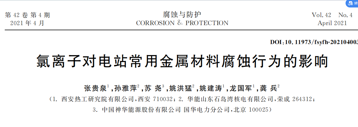 "介绍了氯离子对电站常用碳钢、低合金钢和不锈钢在电站停用期间腐..."