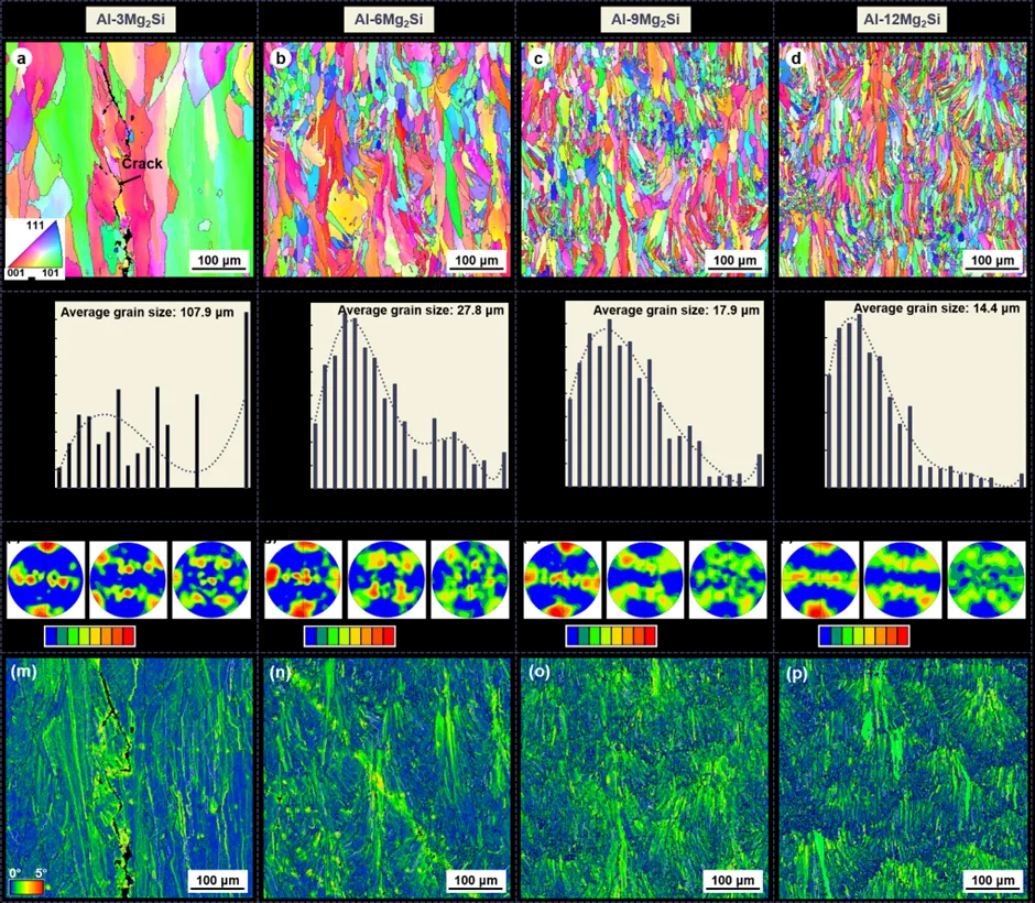 中南大学杨海林教授课题组JMST:从易开裂到无裂纹:增材制造高强Mg2Si改性Al-Mg-Si合金裂纹抑制机制