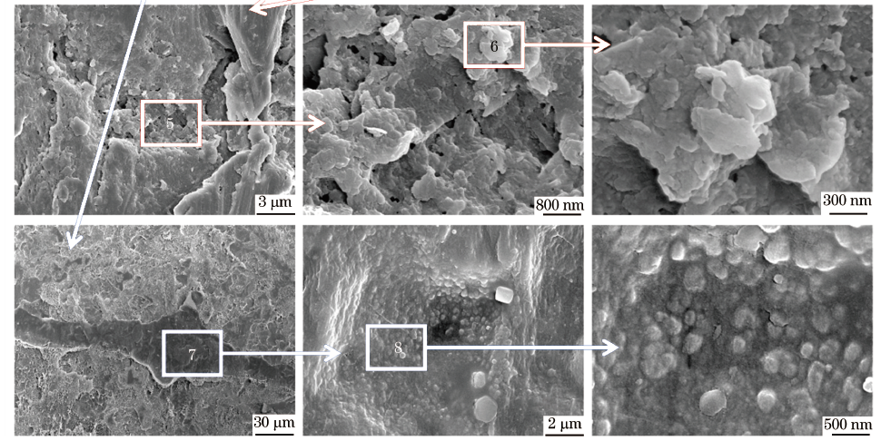 "采用SEM、XRD和Raman光谱对藤壶与钛板界面处藤壶胶的组成和结构..."